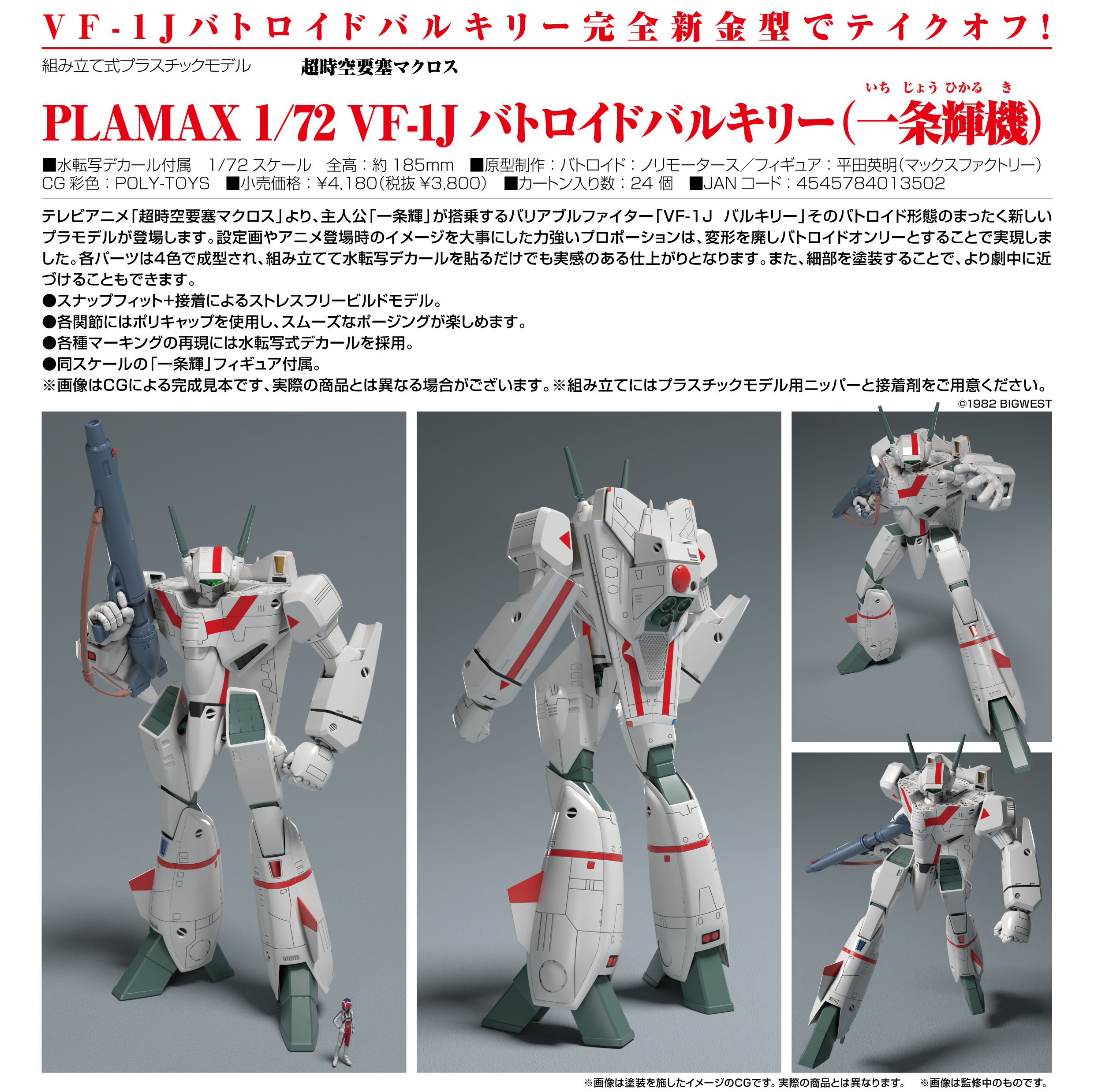 “Macross” PLAMAX PX06 1/72 VF-1J Fighter Valkyrie Vermilion Platoon (Ichijyo Hikaru’s Fighter)