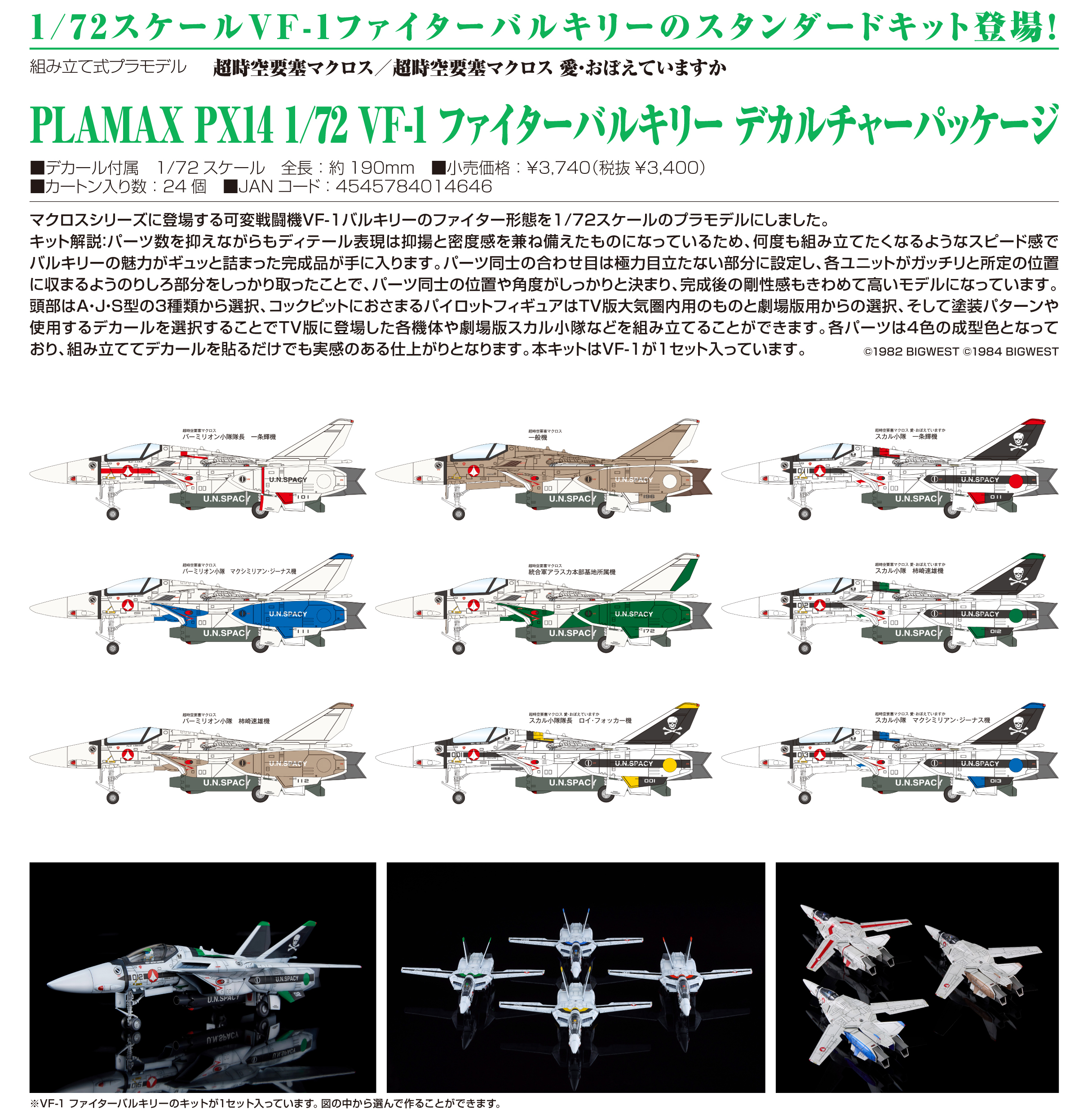 “Macross” / “Macross: Do You Remember Love?” PLAMAX PX14 1/72 VF-1 Fighter Valkyrie Deculture Package